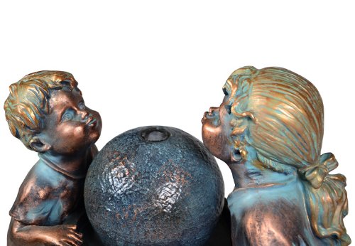 Mit liebevoll aufs Detail bedachter Zierbrunnen. Das Wasser sprudelt aus der Kugel während die Dorfkinder versuchen einen Tropfen zu erhaschen. Dieser Springbrunnen verschönert jeden Garten und sorgt für ein sommerliches Flair.