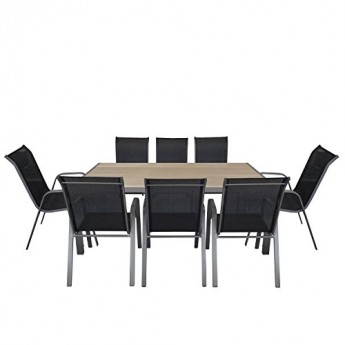 Diese solide und witterungsbeständige 9-teilige Sitzgarnitur beinhaltet einen Aluminium-Gartentisch mit Polywood-Tischplatte und
